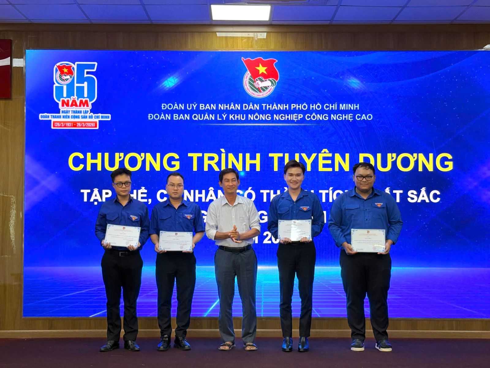 Sáng ngày 31/3/2026, tại Hội trường Ban Quản lý Khu Nông nghiệp Công nghệ cao, Đoàn Ban Quản lý Khu Nông nghiệp Công nghệ cao đã tổ chức Lễ kỷ niệm 95 năm Ngày thành lập Đoàn TNCS Hồ Chí Minh (26/3/1931 – 26/3/2026), kết hợp tuyên dương các tập thể, cá nhân có thành tích xuất sắc trong công tác Đoàn và phong trào thanh niên.