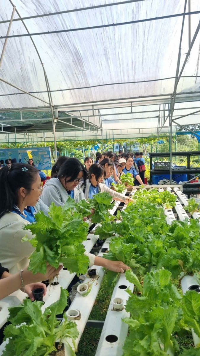 Trong khuôn khổ chương trình, học sinh được tham quan các mô hình sản xuất tiêu biểu như khu nhà trồng nấm, tìm hiểu quy trình sản xuất và chăm sóc theo quy trình kỹ thuật; trực tiếp tham gia thu hoạch rau thủy canh, tiếp cận phương pháp canh tác không sử dụng đất, ứng dụng công nghệ trong kiểm soát dinh dưỡng. Bên cạnh đó, đoàn tham quan vườn cà chua bi và thực hành trồng lan, qua đó nâng cao kỹ năng thực hành, ý thức lao động và tinh thần hợp tác.